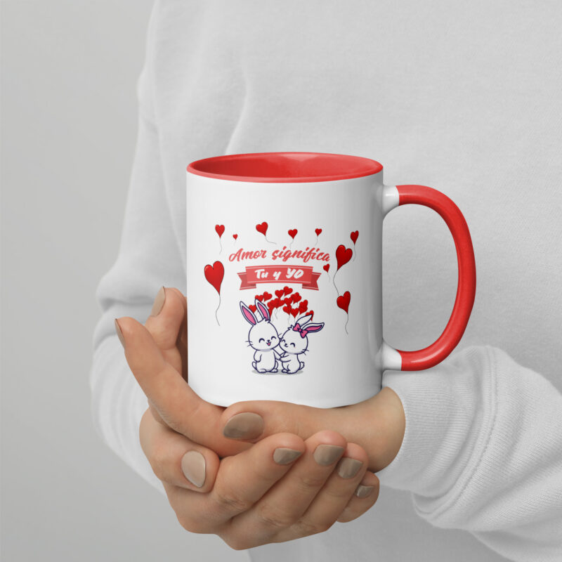 “FELIZ DÍA MAMÁ TE AMO CON TODO MI CORAZÓN” Mug with Red Color Inside